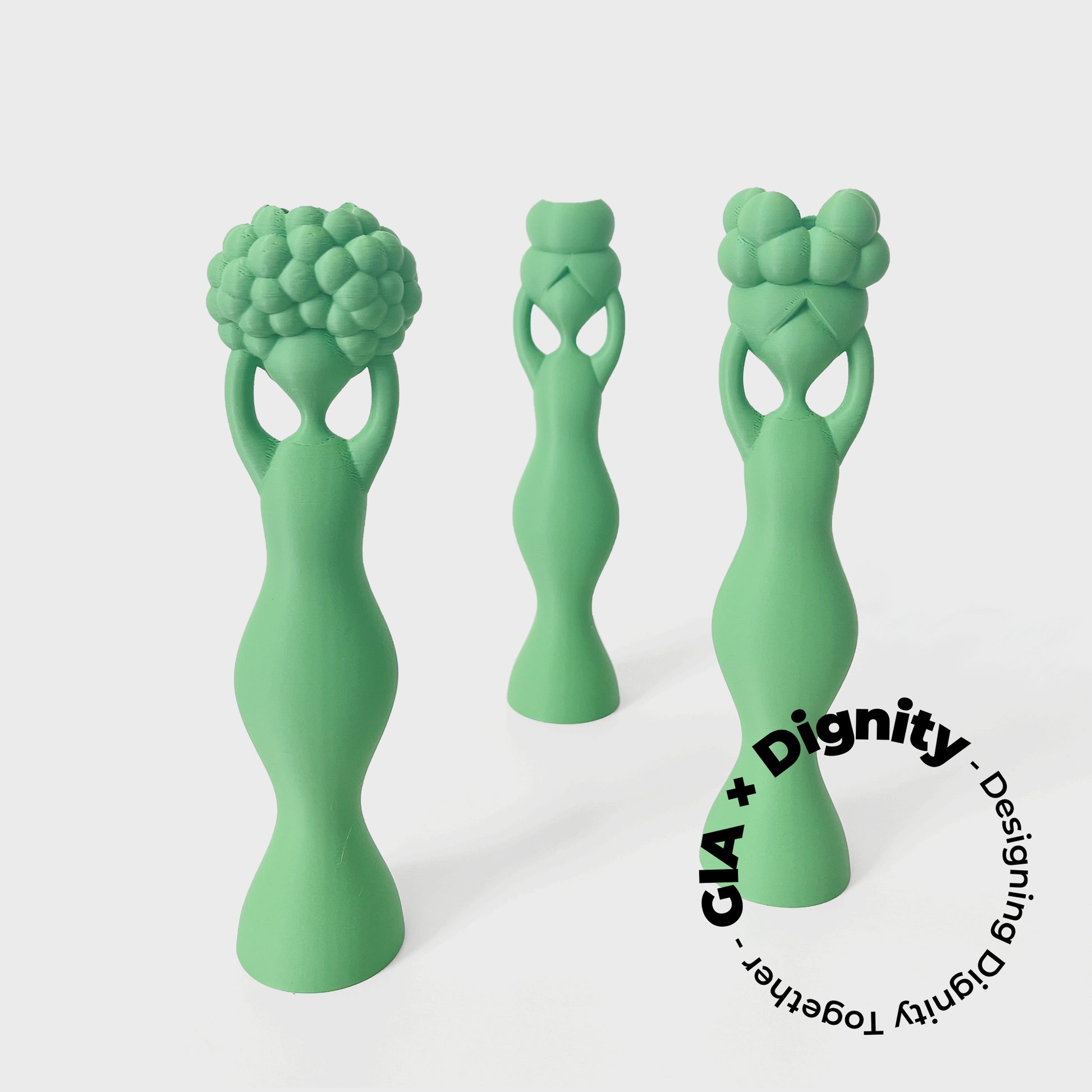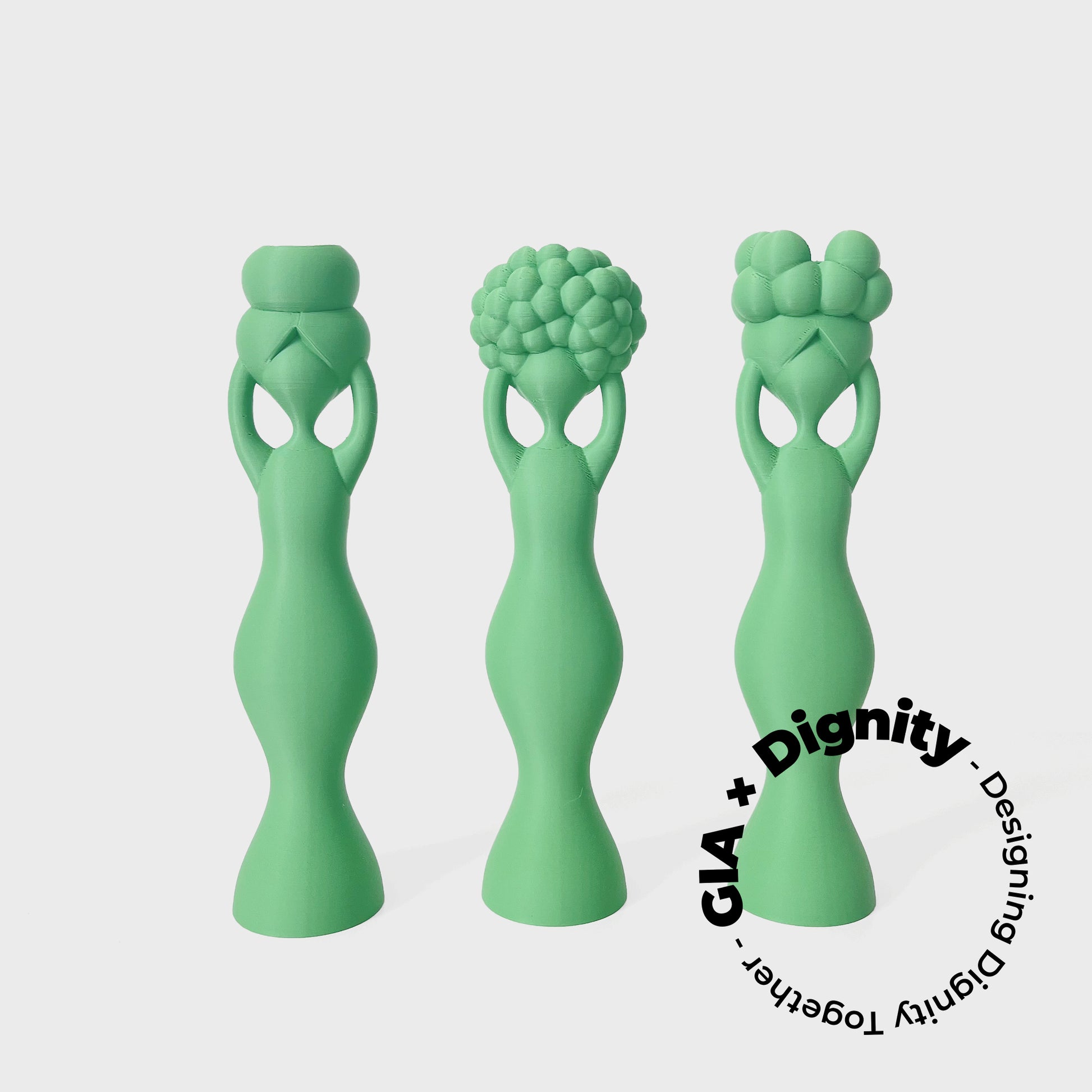 Portacandele sono stampati in 3D e rappresentano le figure femminili del pattern Dignity, simbolo di forza, identità e inclusione.